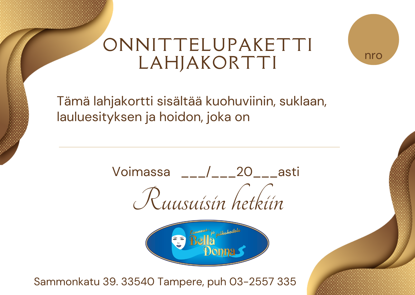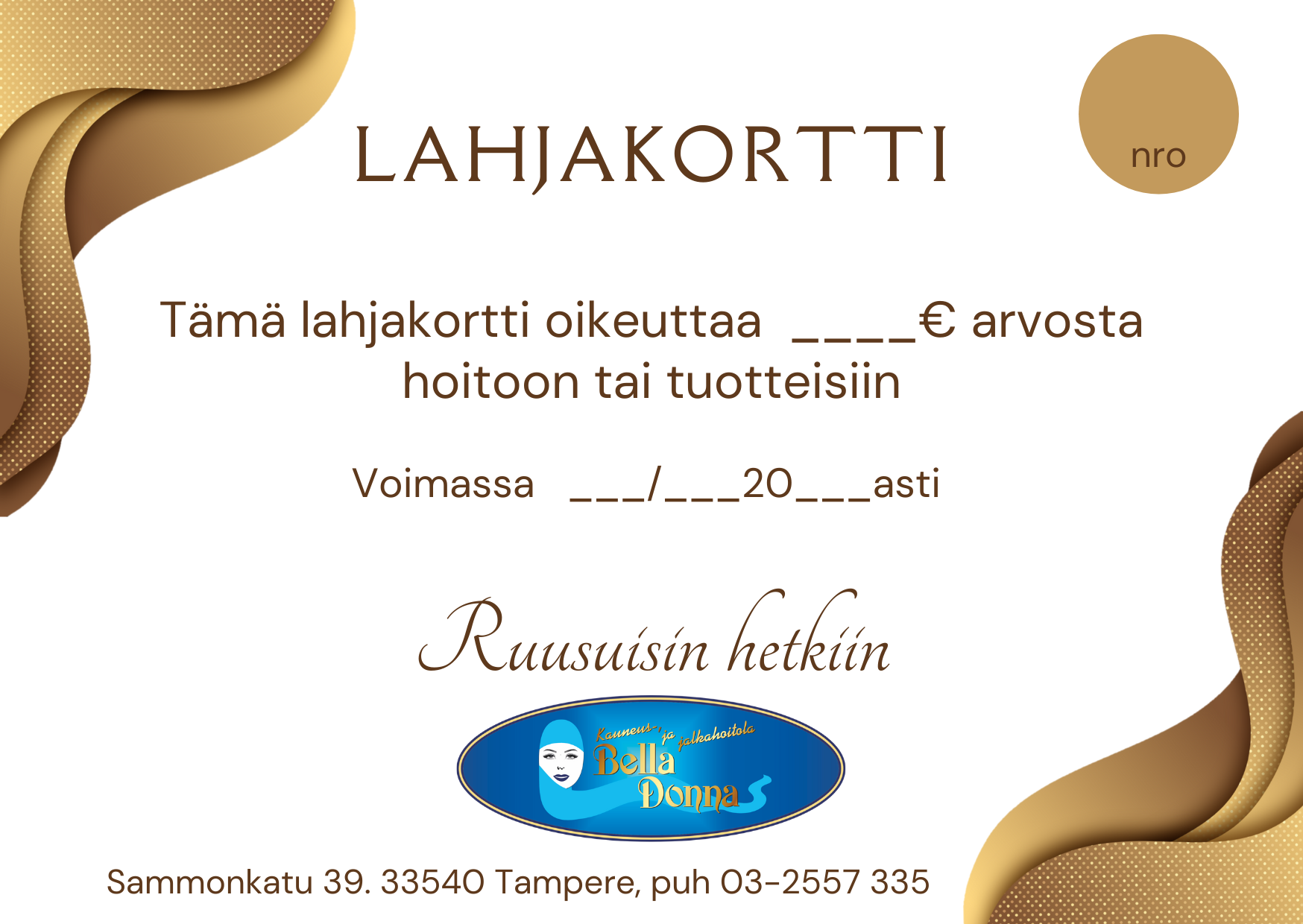 Vaihe 3: Kun olet tulostanut lahjakortin, voit itse kirjoittaa korttiin mihin hoitoon se oikeuttaa tai minkä arvoinen summa kortissa on.
